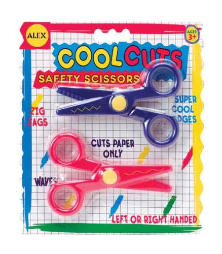 Brightly colored Cool Cuts safety scissors let left or right handed kids cut paper safely in crazy zig zags or super cool wavy edges.